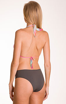 Top frente única regulável. Calcinha cintura média/alta inteira.